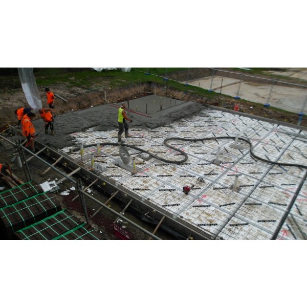 The Danley PodRail™ provides support for mesh in typical residential foam pod slabs and cannot be matched by any other type of spacer. Its unique flatness gives it the ability to resist sinking into pods and always provides the designed cover to mesh utilising just two PodRails per pod. Fast and easy to install, the PodRail saves time and reduces fatigue during set up.