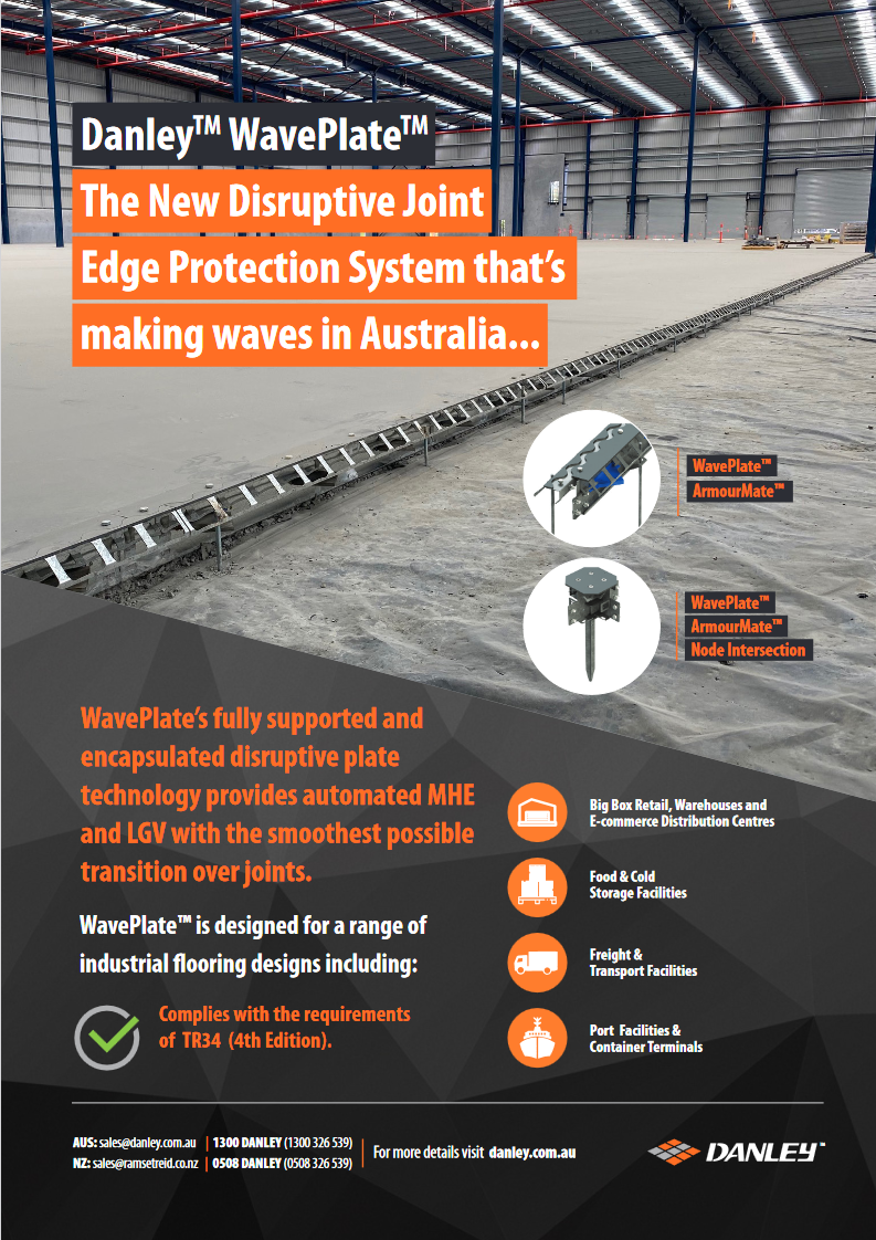 Danley™ WavePlate™ ArmourMate™ utilises disruptive joint technology to protect concrete edges and continuously supports passing material handling equipment (MHE), providing for a smooth, low impact transition across joints up to 20mm wide.